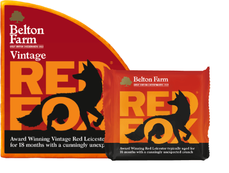 Matured for over 16 months, Red Fox is an aged Red Leicester. The Red Fox name is no accident, referring to the weather vane that has stood aloft Belton Farm since 1815.