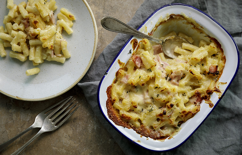 4. Stir and season to your satisfaction, then top with breadcrumbs and a few drizzles of olive oil before transferring to a deep casserole or earthenware dish. Bake until golden, bubbling and crispy, then serve with a crisp green salad.