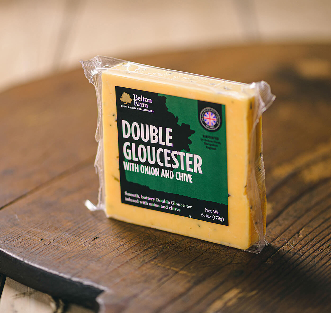Belton Farm Double Gloucester Onion and Chive, like all our cheese varieties, is made to an individual recipe which has been handed down over the generations. It is a vat-made cheese, which involves the onions and chives being added to the cheese-make.