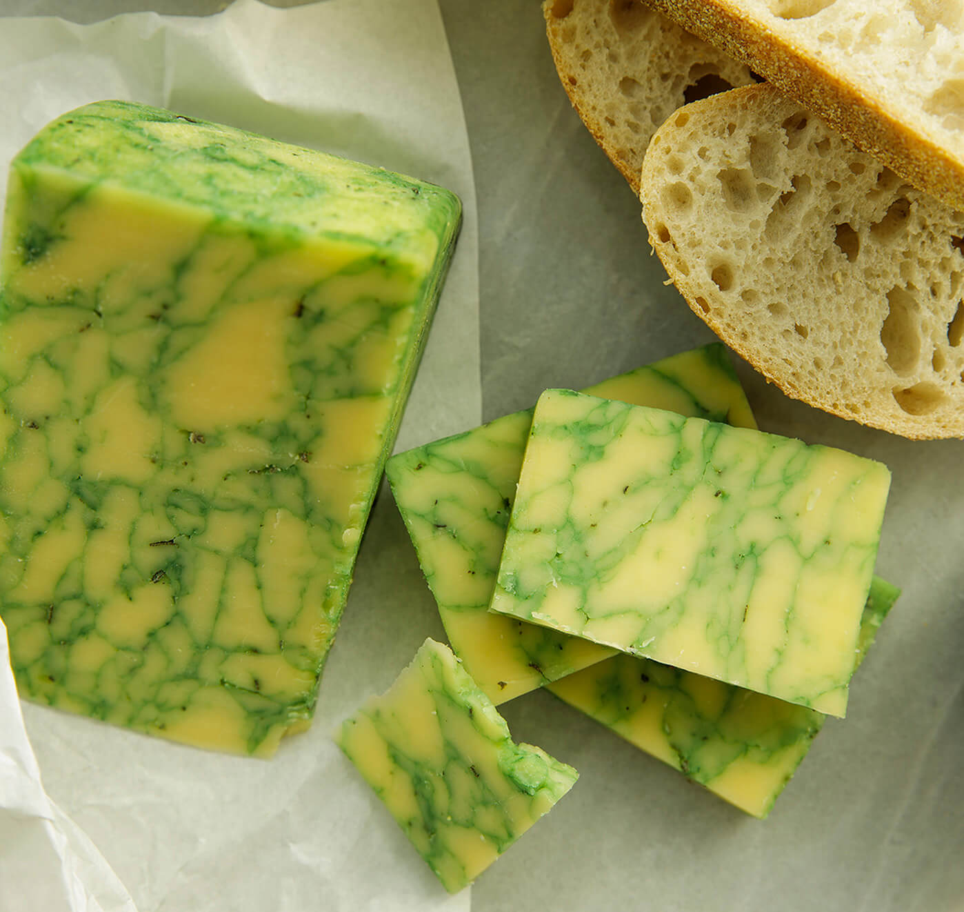 Smooth, creamy Derby cheese marbled with a delicate sage infusion.